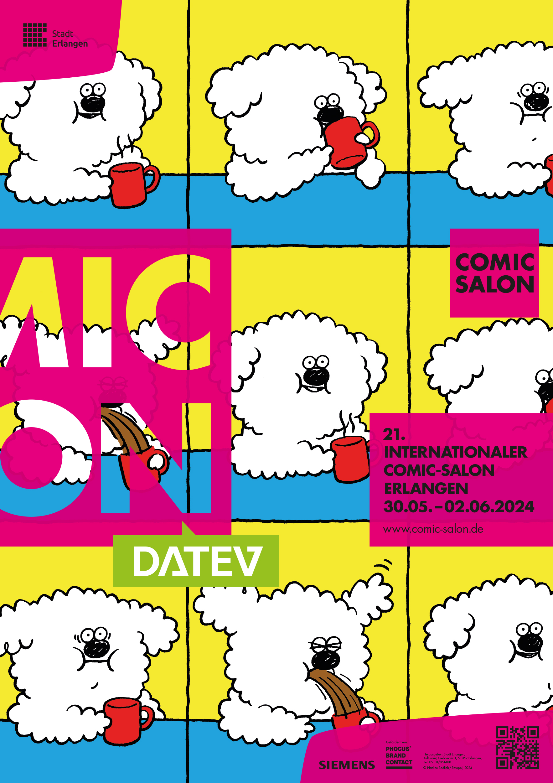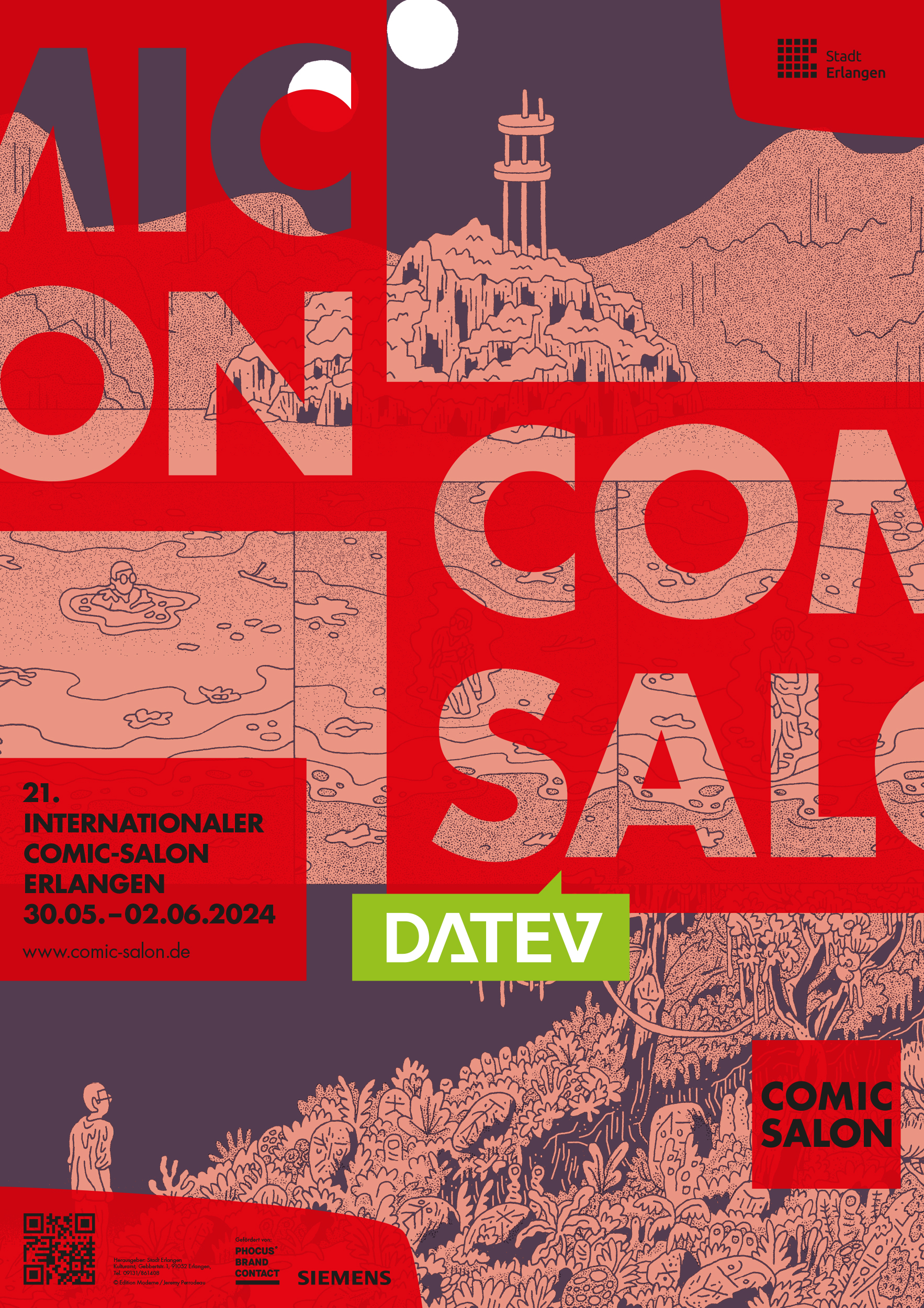 Die Bilder dieser Download-Seite sind JPEGs im RGB-Format vom 21. Internationalen Comic-Salon 2024. Bitte beachten Sie, dass Download und Verwendung der Pressebilder ausschließlich für Journalist*innen im Zusammenhang mit der Berichterstattung über den Internationalen Comic-Salon Erlangen und nur mit Angabe des Copyrights gestattet ist. Sollten Sie weiteres Bildmaterial benötigen, setzen Sie sich bitte mit uns in Verbindung: presse@comic-salon.de